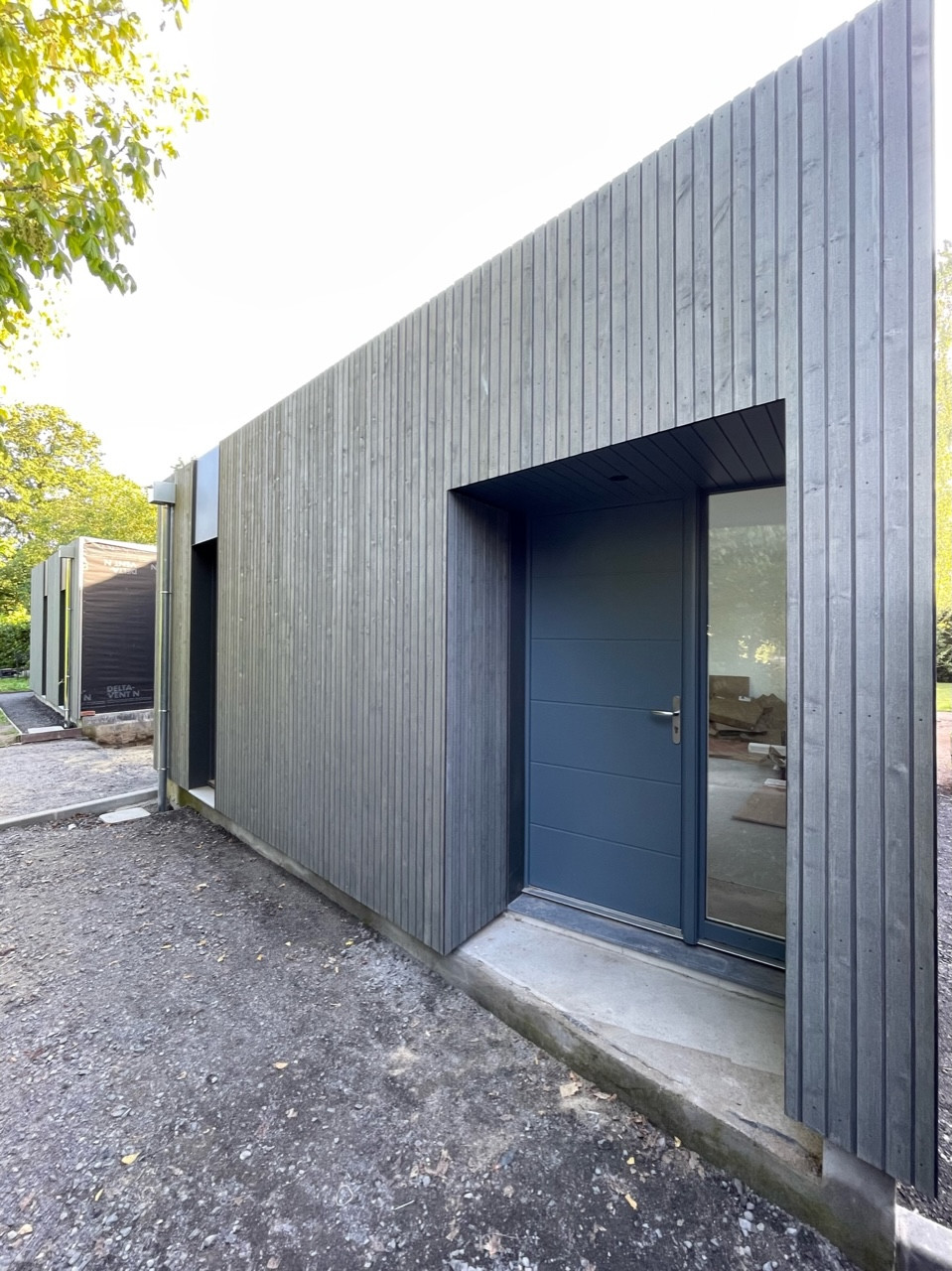 Pose d’un bardage Cape Cod, sur une extension réalisée par nos soins à Péronne en mélantois